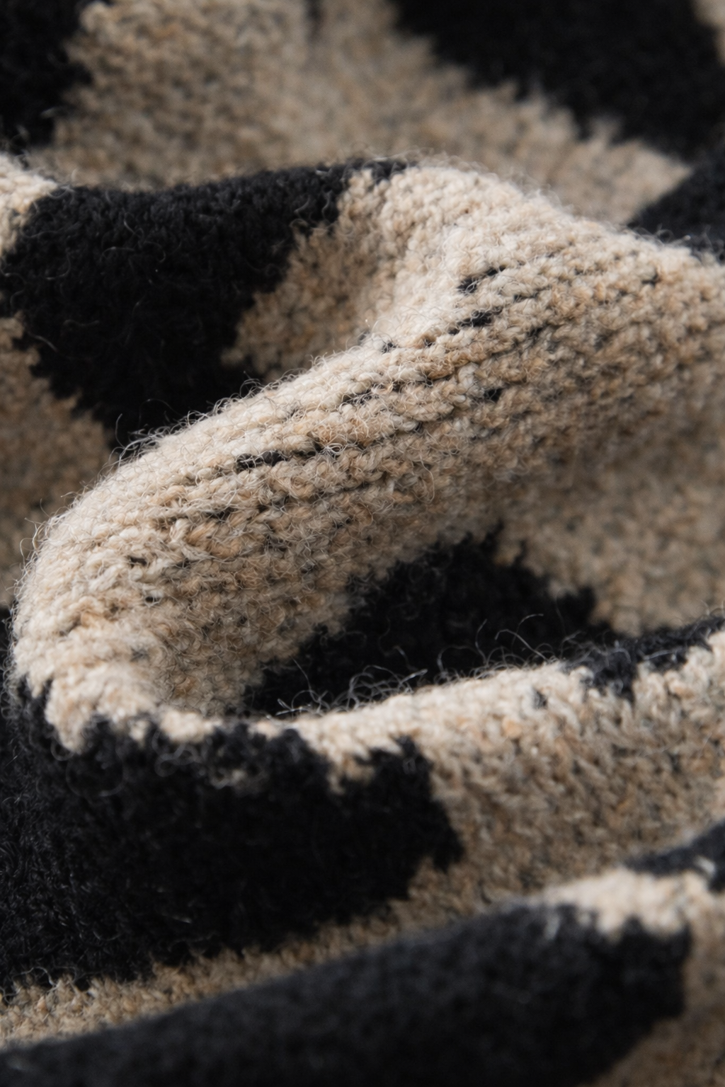 Style this leopard knit vest with neutral tones like beige, black, or camel to highlight the print while keeping the look sophisticated. Pair it with wide-leg trousers and loafers for an “old money” commute outfit, or layer it over a slim black turtleneck with ankle boots for a cozy yet chic autumn city look. Perfect for minimalist wardrobes that love subtle statement pieces.